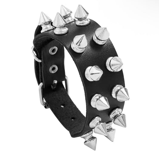 Hip Hop Men Silver Color Spiked Rock Bracelet Bangles Women Vintage Punk Cosplay Black Goth PU Leather Wrap Bracelet Emo Jewelry