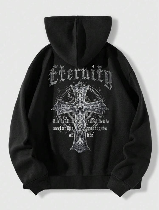 Men's Faith Rhinestone Texture Sweatshirt, Street Gothic Style, Shiny Embroidered Design, Perfect for Streetwear, Outdoor, Daily Wear