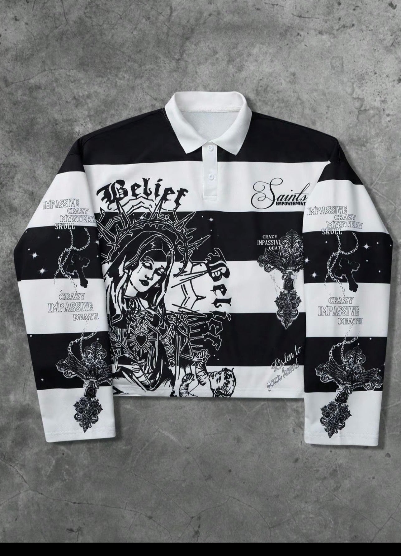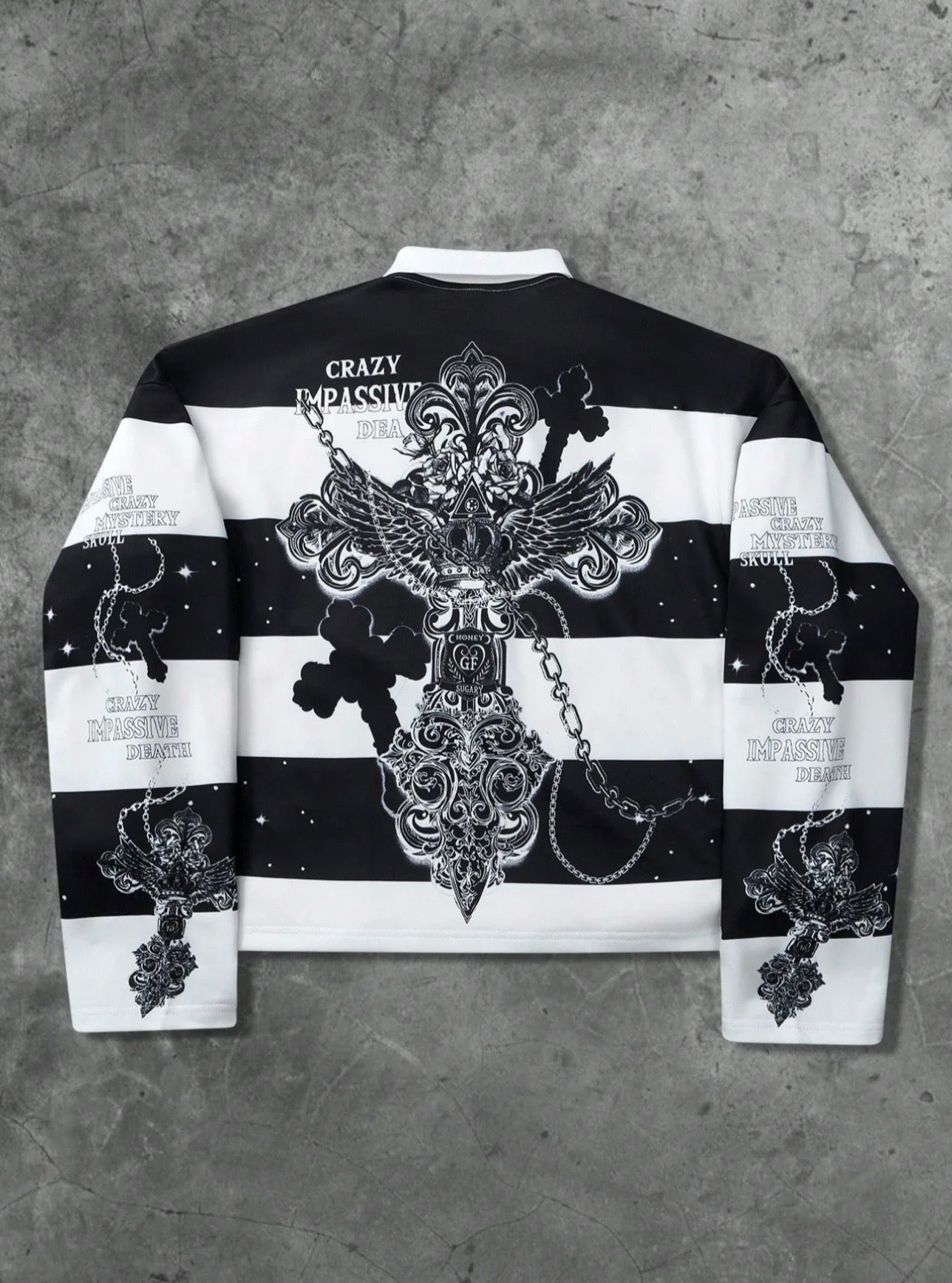 Unisex Y2K Style Virgin Mary & Saints Cross Print Striped Hoodie, Casual Streetwear, Couple, Trendy Pullover, Men's Gift